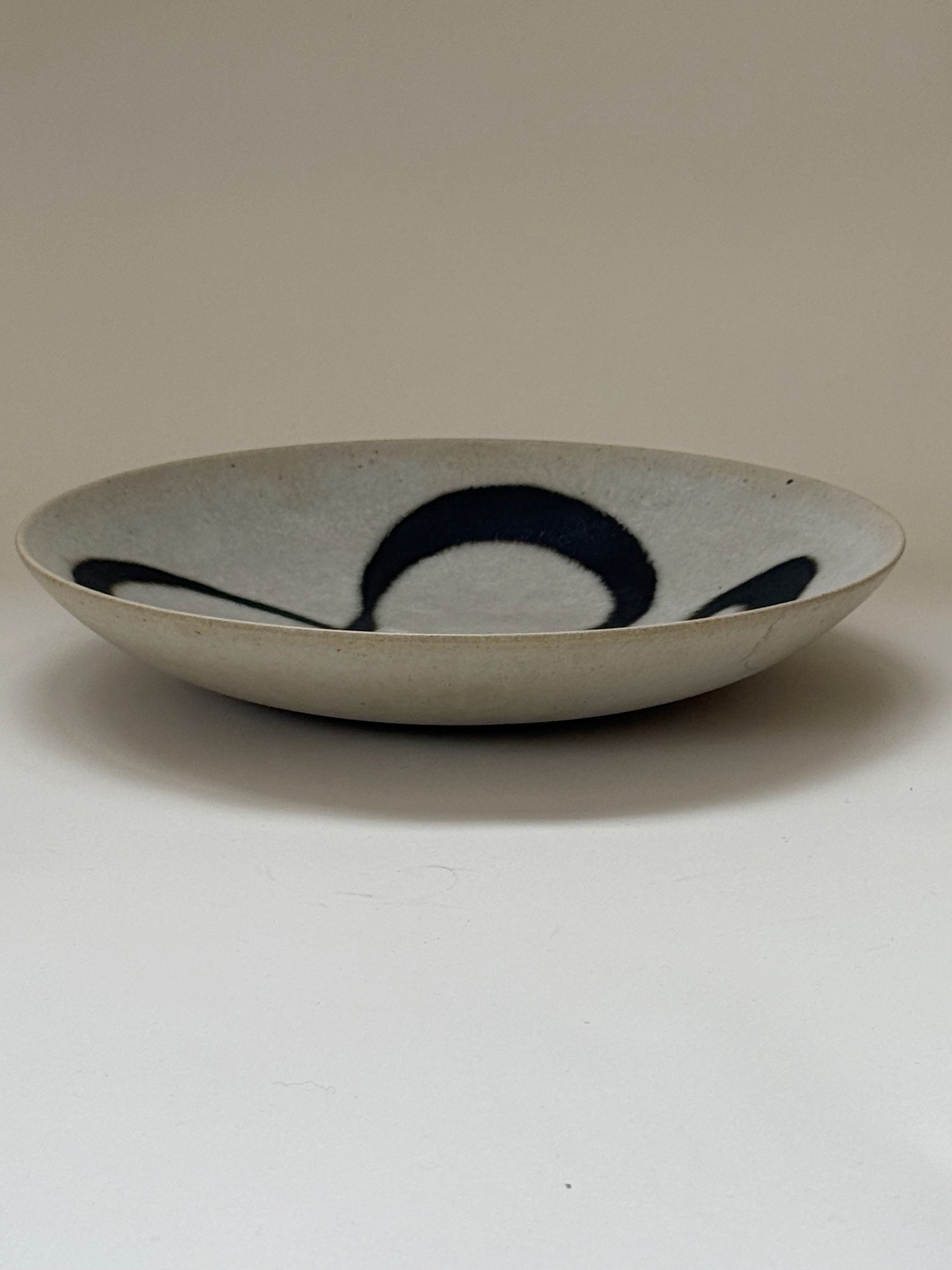 With its generous diameter and relatively shallow profile, the bowl carries strong visual presence, equally compelling displayed flat as a sculptural object.