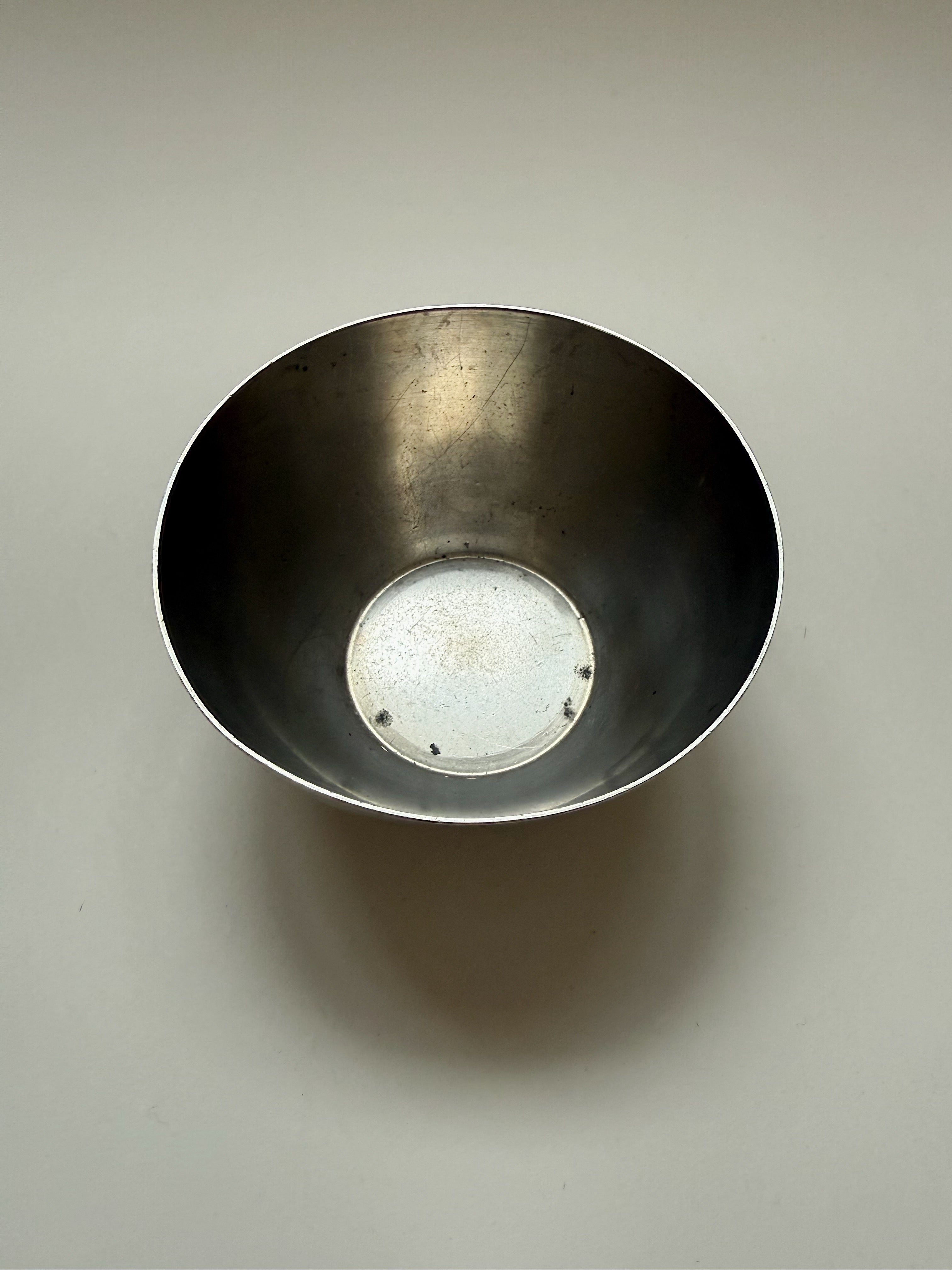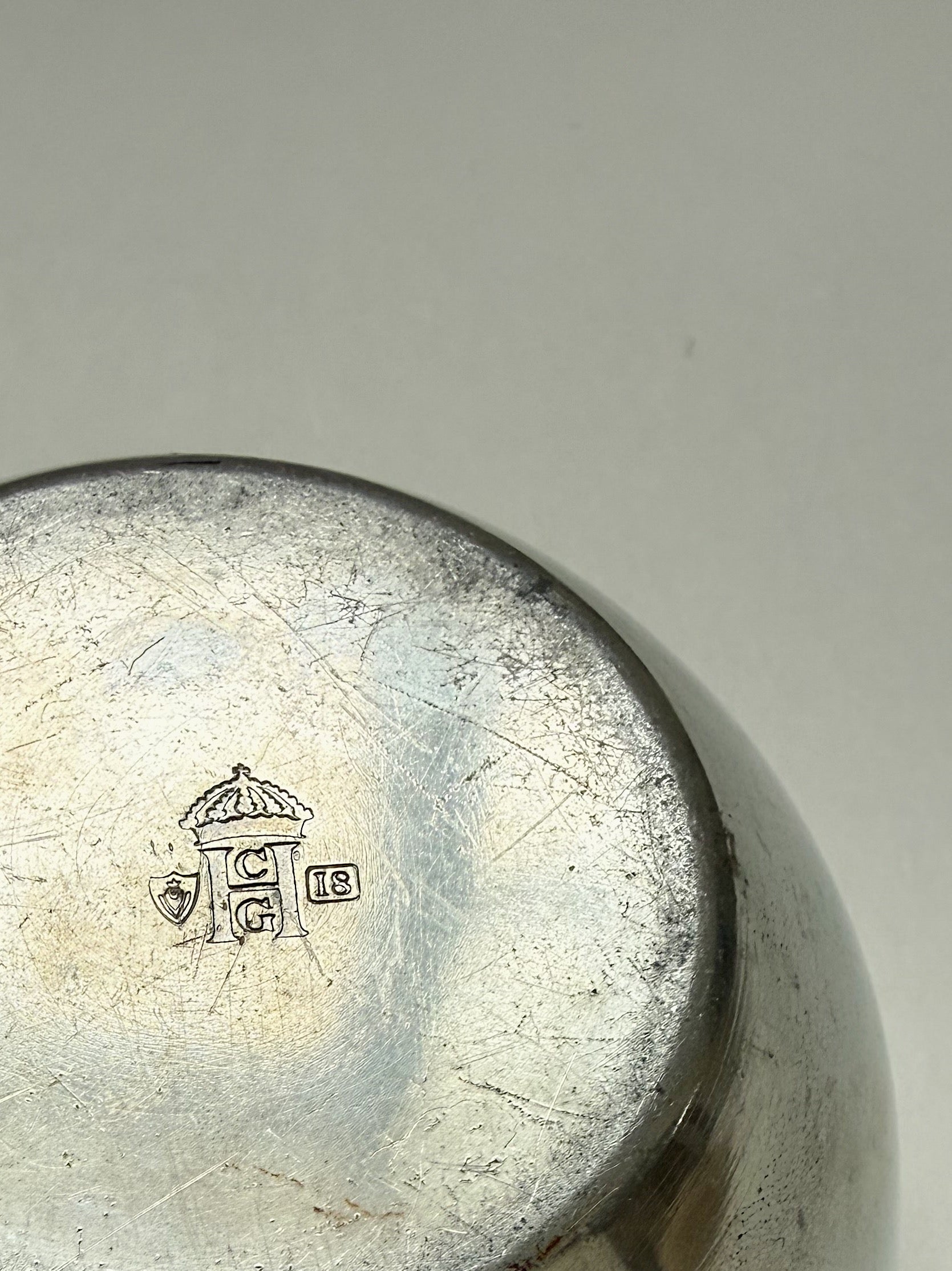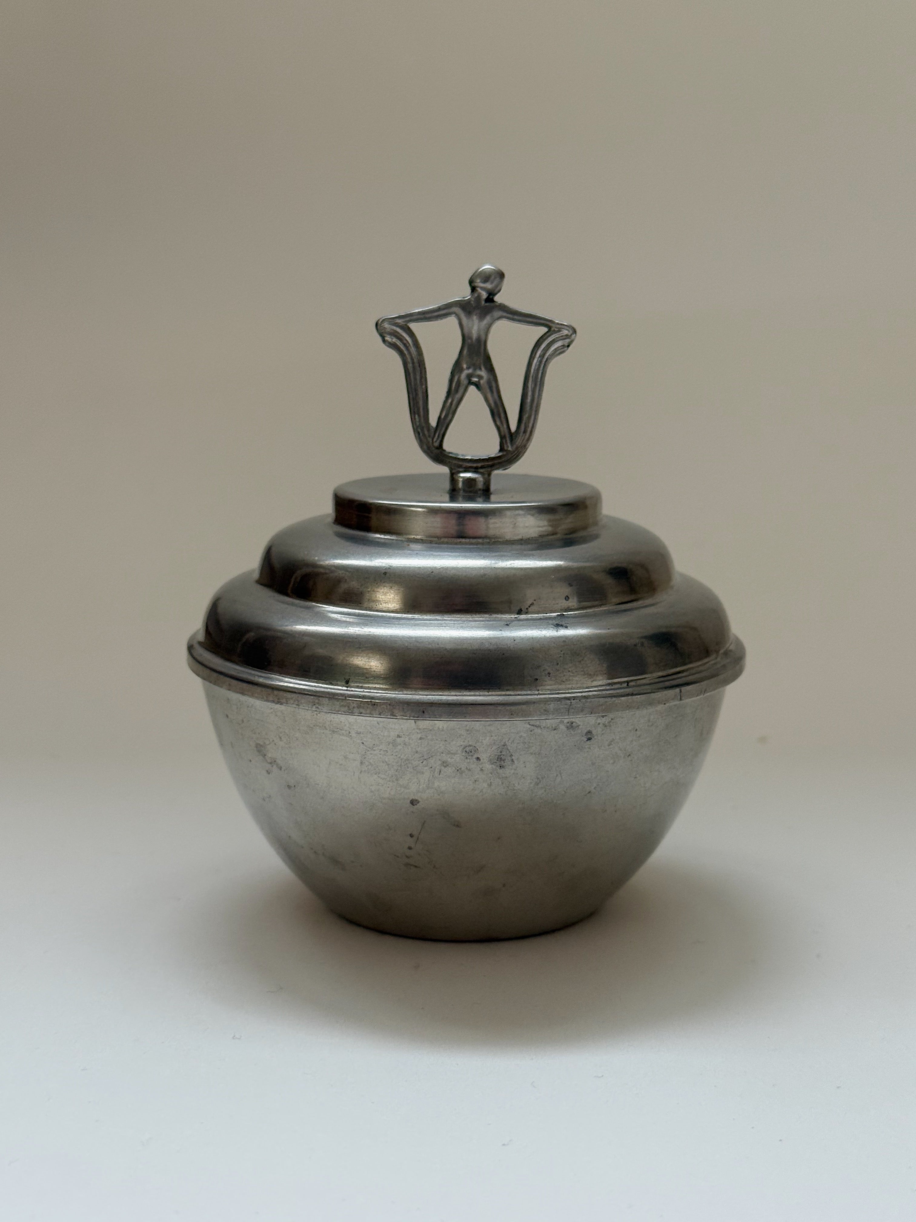Designed by Sylvia Stave and produced by CG Hallberg, this elegant bonbonnière is a refined example of Swedish Art Deco at its most sculptural and restrained. Crafted in pewter and dated I8 (1935), the piece reflects Stave’s modernist sensibility, where clean geometry meets a subtle sense of play.