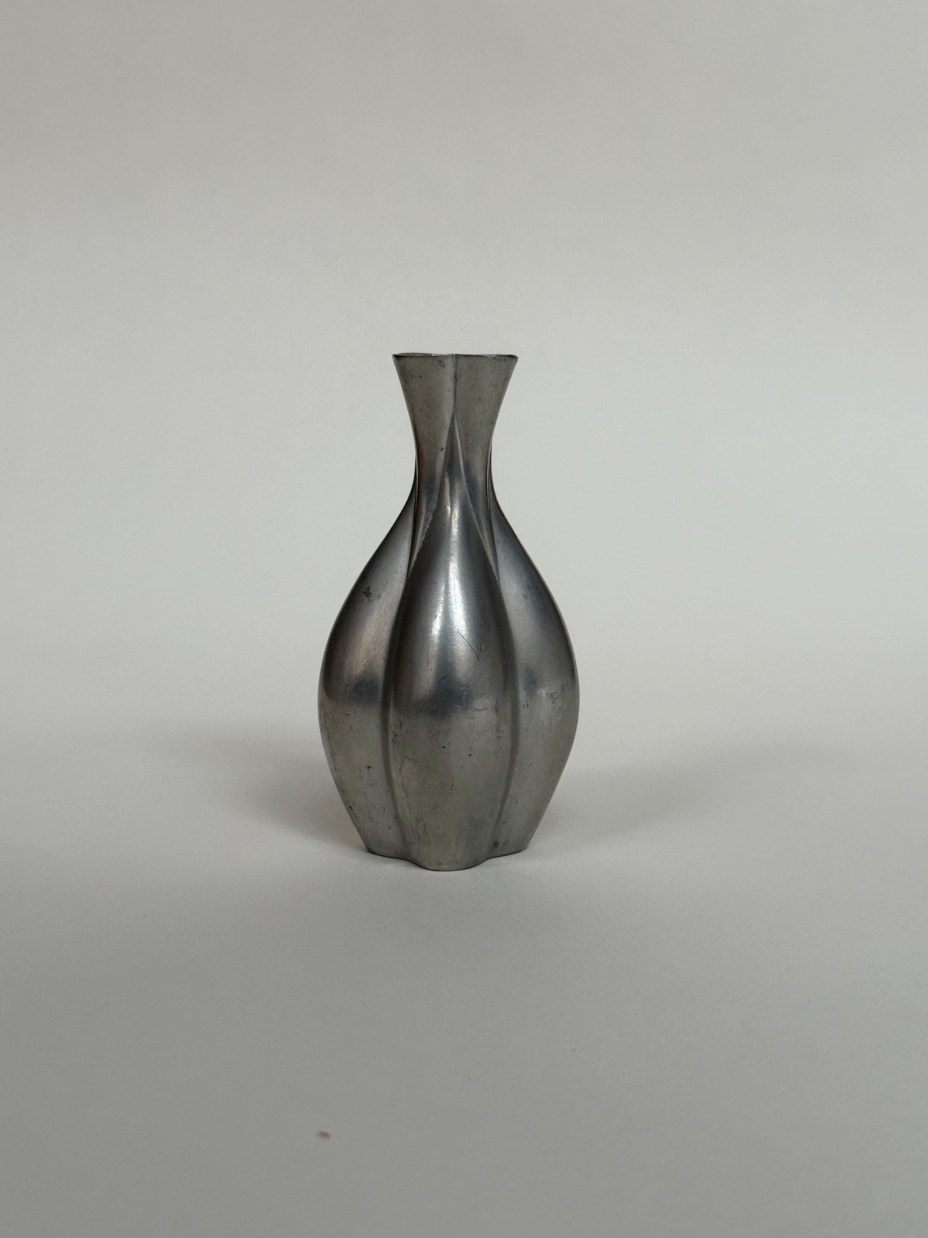 Compact yet expressive, the vase carries the understated strength and elegance characteristic of Scandinavian Art Deco. The naturally aged pewter has developed a beautiful, even patina, lending depth and character to the piece. Equally compelling as a standalone object or as part of a curated arrangement.