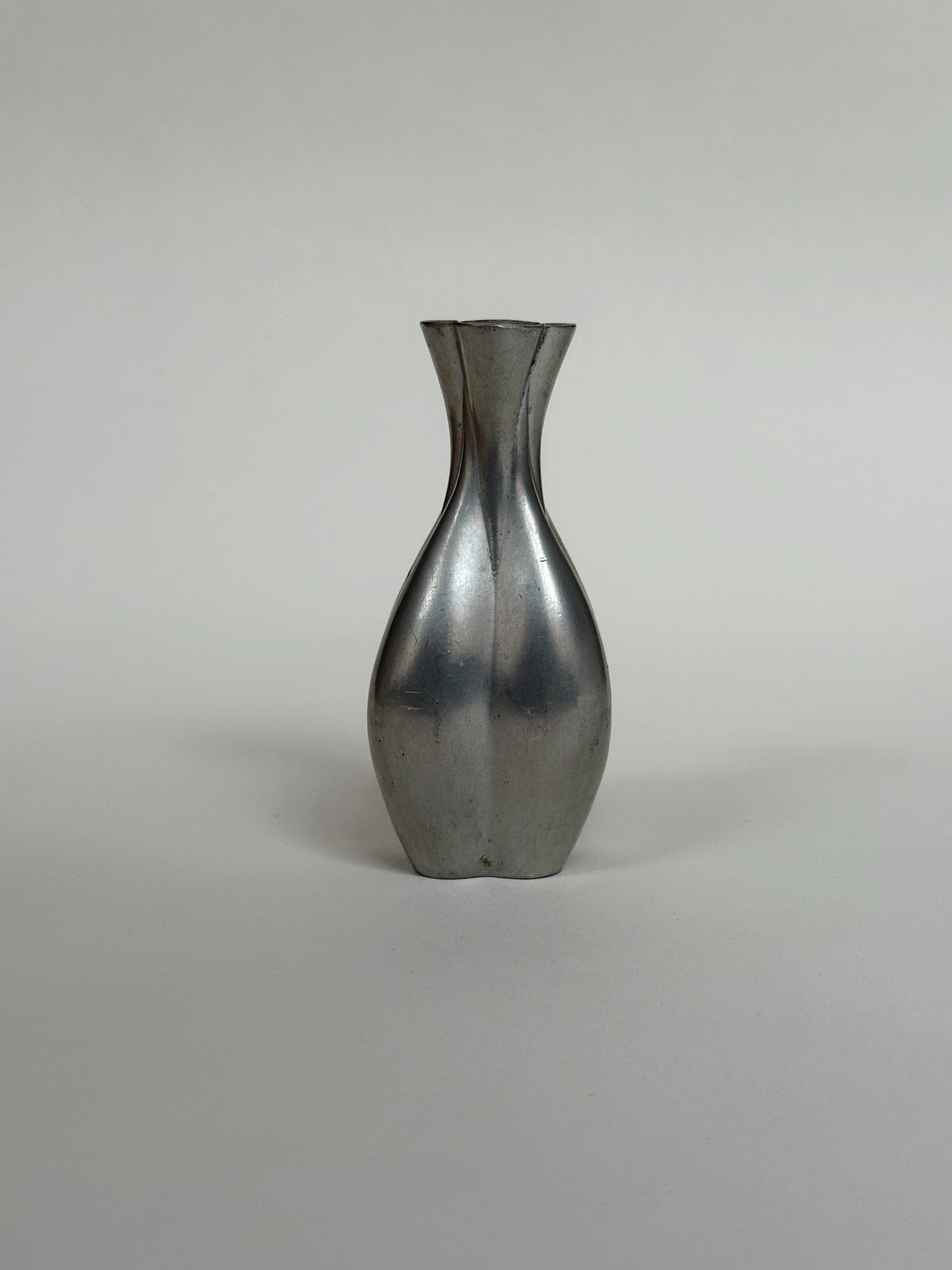 A sculptural pewter vase by Just Andersen, dating to the 1930s. Numbered 2319, this refined piece exemplifies Andersen's distinctive approach to form, with softly articulated planes that create a quiet play of light and shadow across the surface.