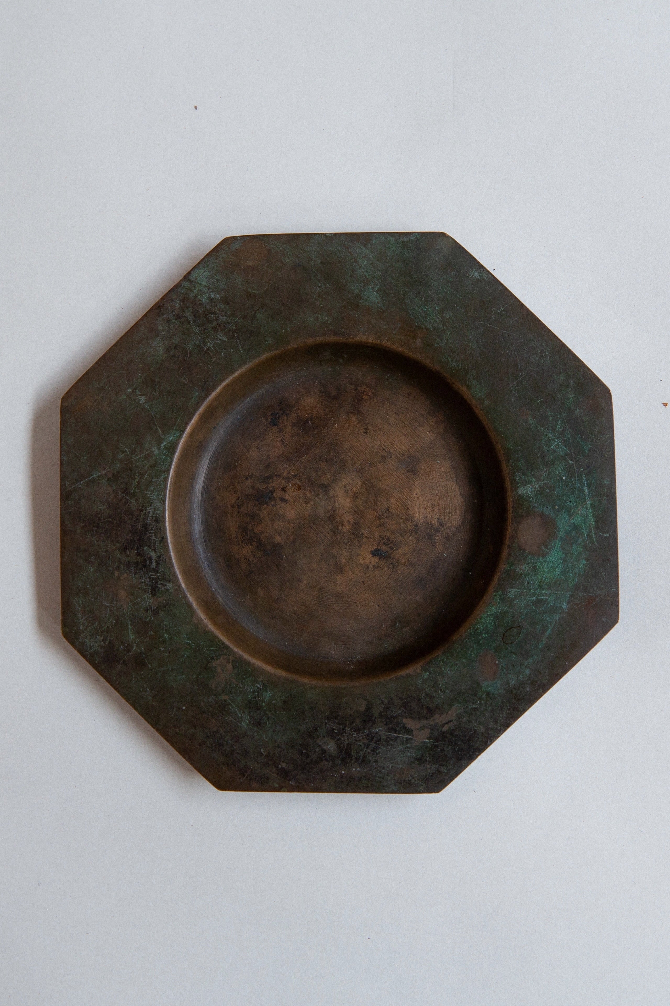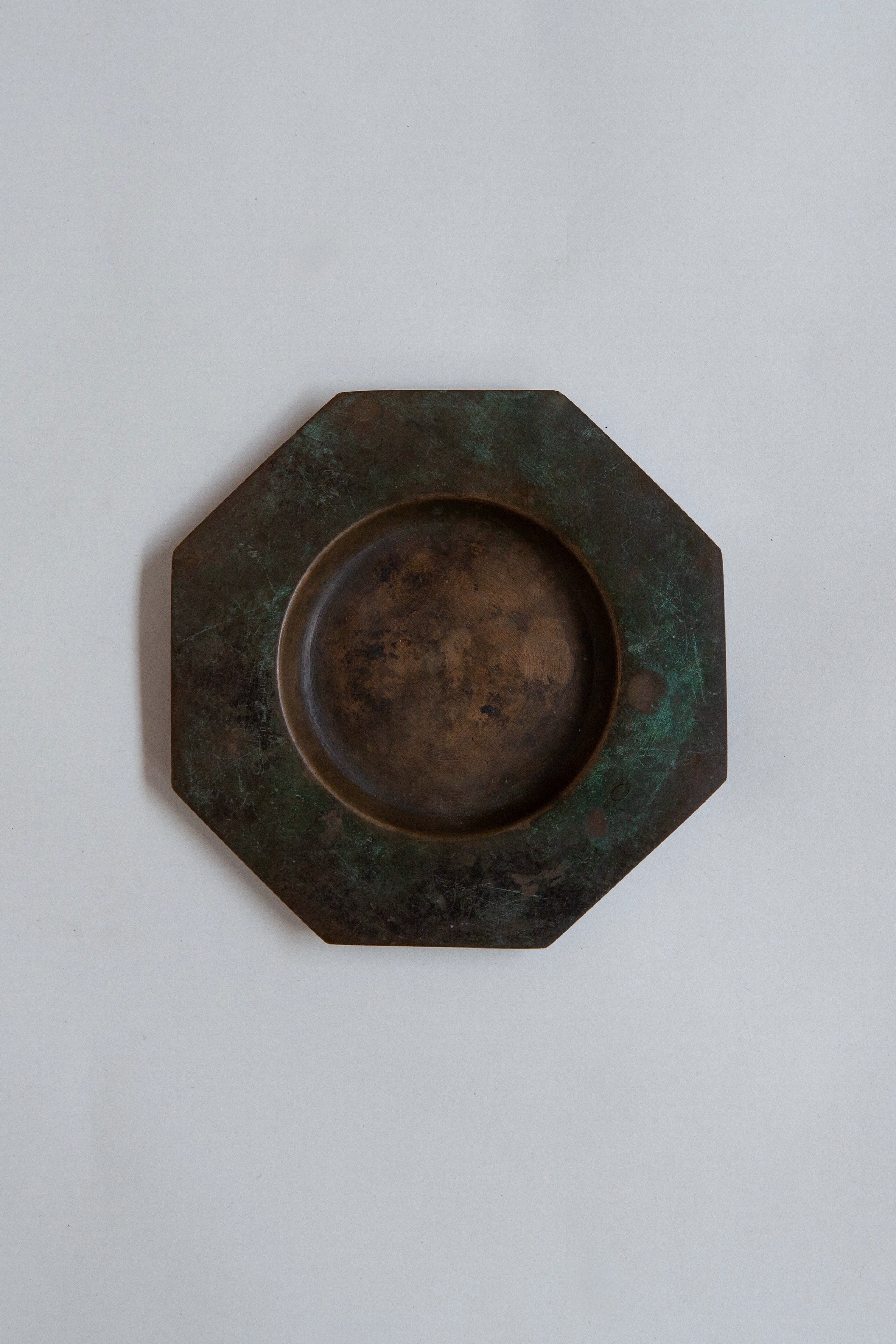 A sculptural bronze bowl in the Swedish Grace style, designed by Jacob Ängman for Guldsmedsaktiebolaget (GAB) in the 1920s. Model 292. The bowl’s octagonal form and flat rim embody the refined geometry characteristic of the era, while the green patinated bronze surface lends it a quietly powerful presence. An exquisite example of early 20th-century Swedish design, where craftsmanship and modernist elegance meet.