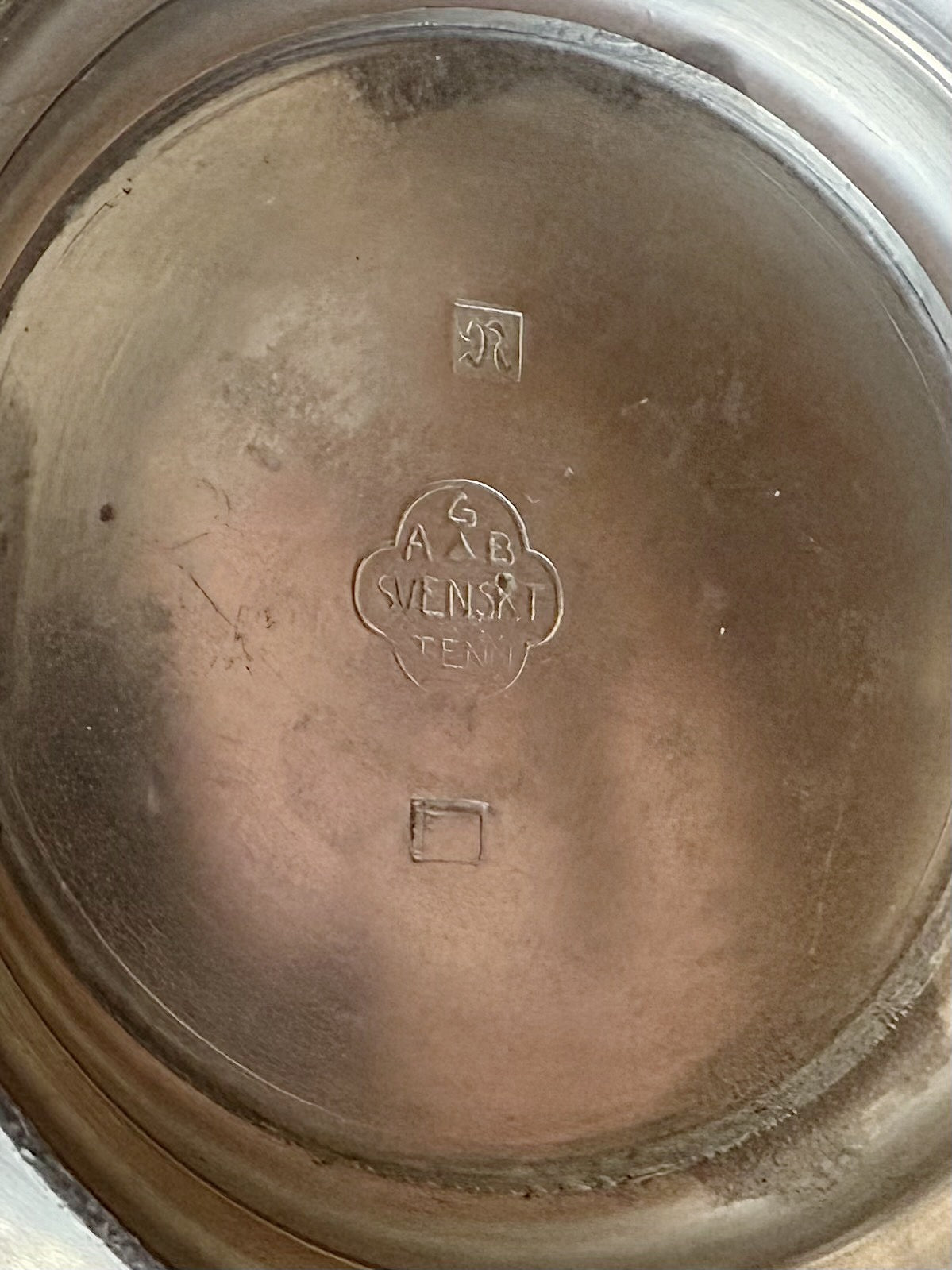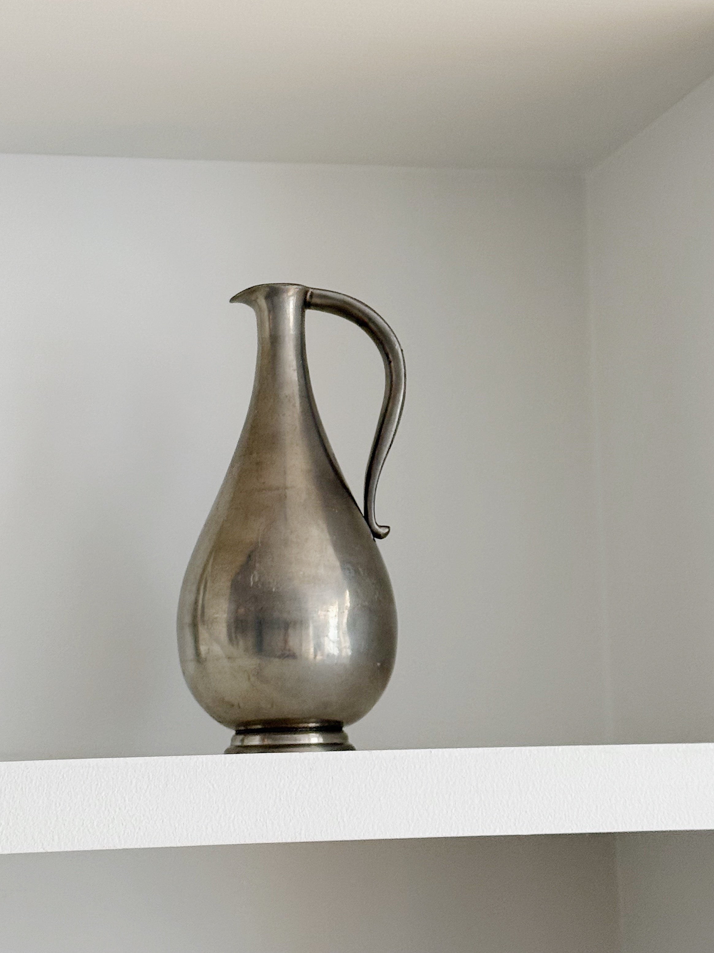 A graceful vessel with a sculptural silhouette, stamped GAB Svenskt Tenn to the underside. Standing 25 cm high with a diameter of 12 cm at its widest point, it combines function with timeless form. While originally conceived as a jug, its elegant proportions also make it beautifully suited for use as a vase.