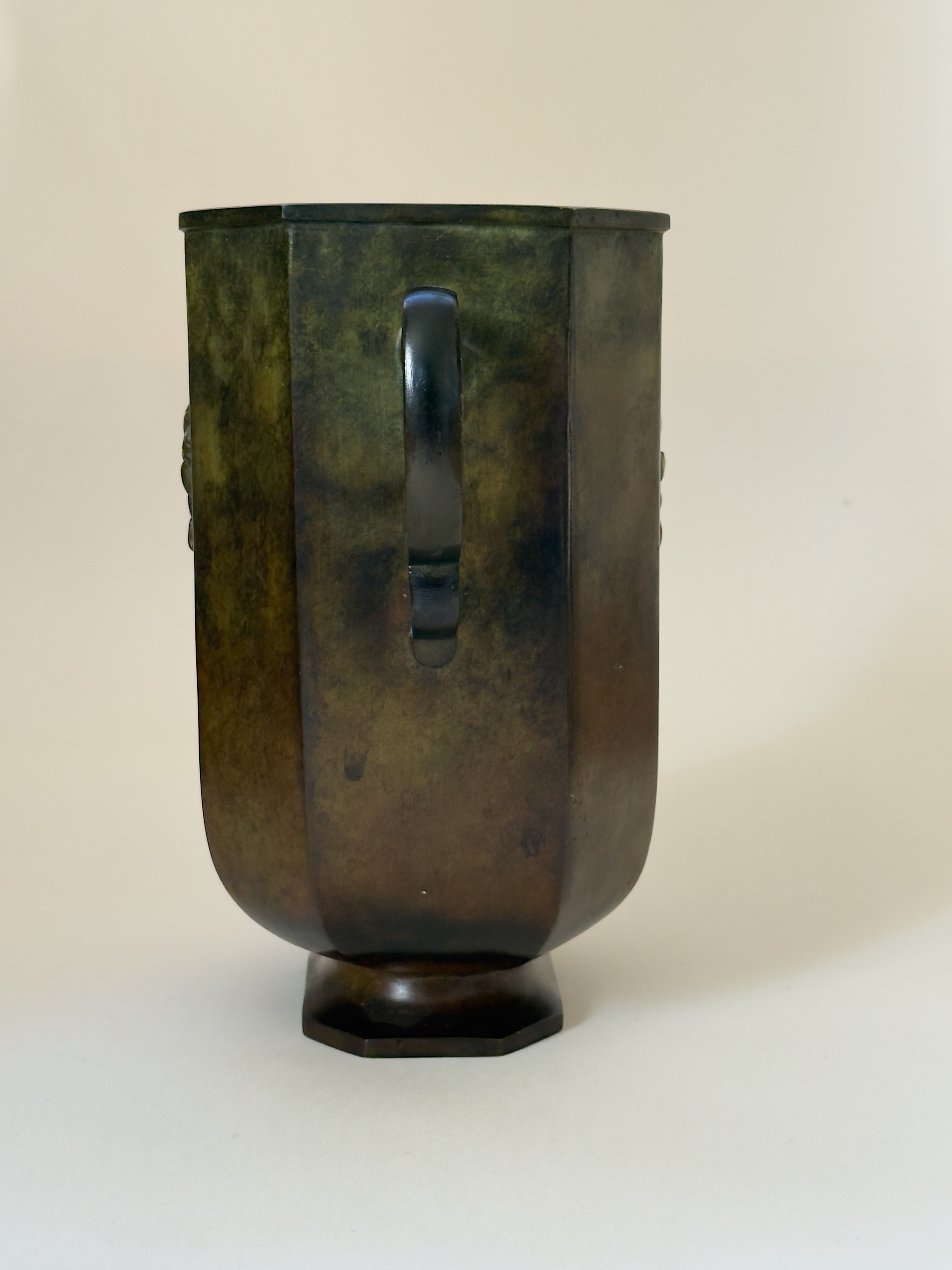 A sculptural Art Deco bronze vase produced by GAB (Guldsmedsaktiebolaget), Sweden, in the 1920s–30s.