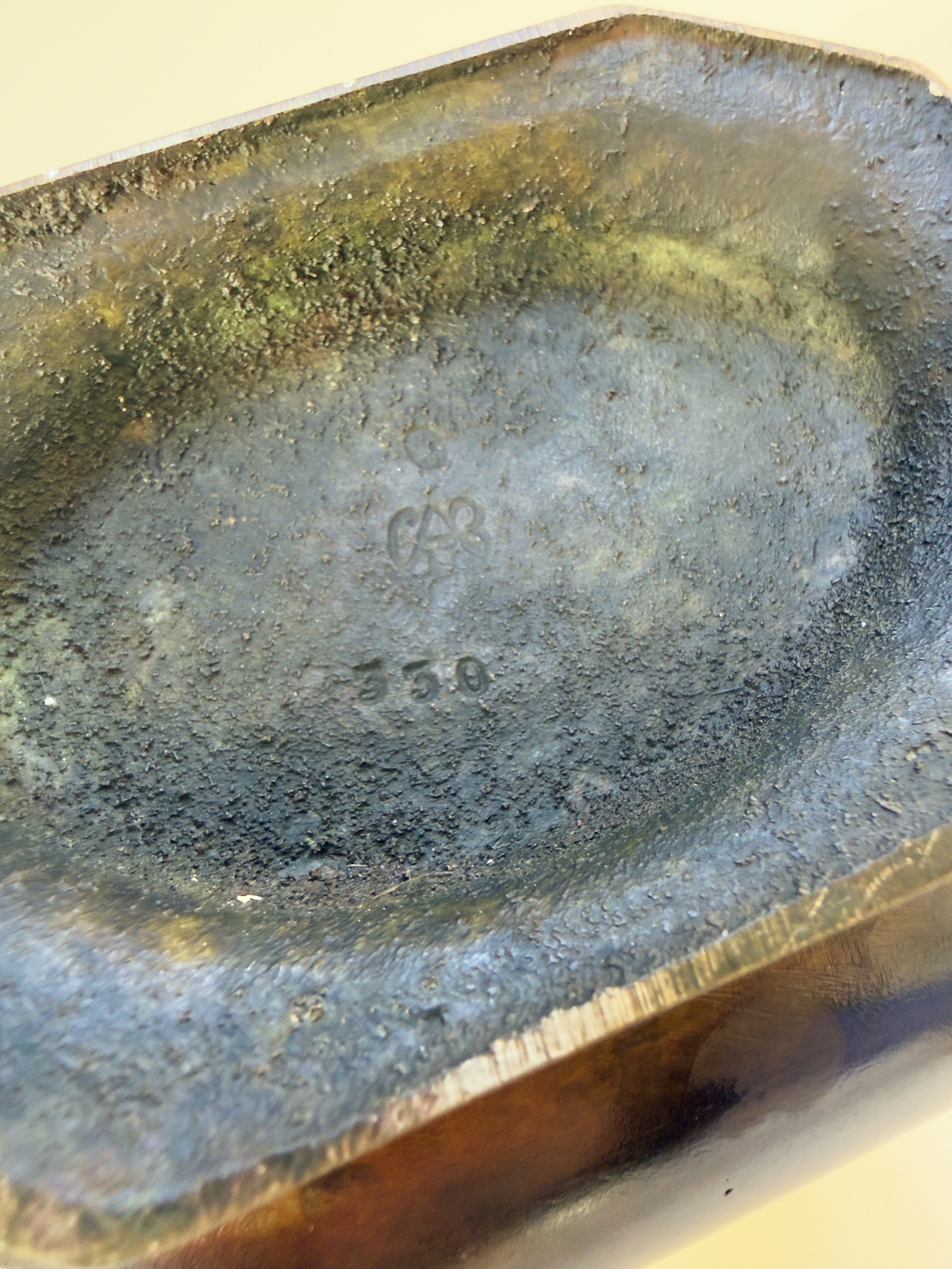 The bronze has developed a beautiful green-brown patina over time, with rich tonal variations that enhance the sculptural qualities of the form. Stamped GAB and numbered 330 to the underside.