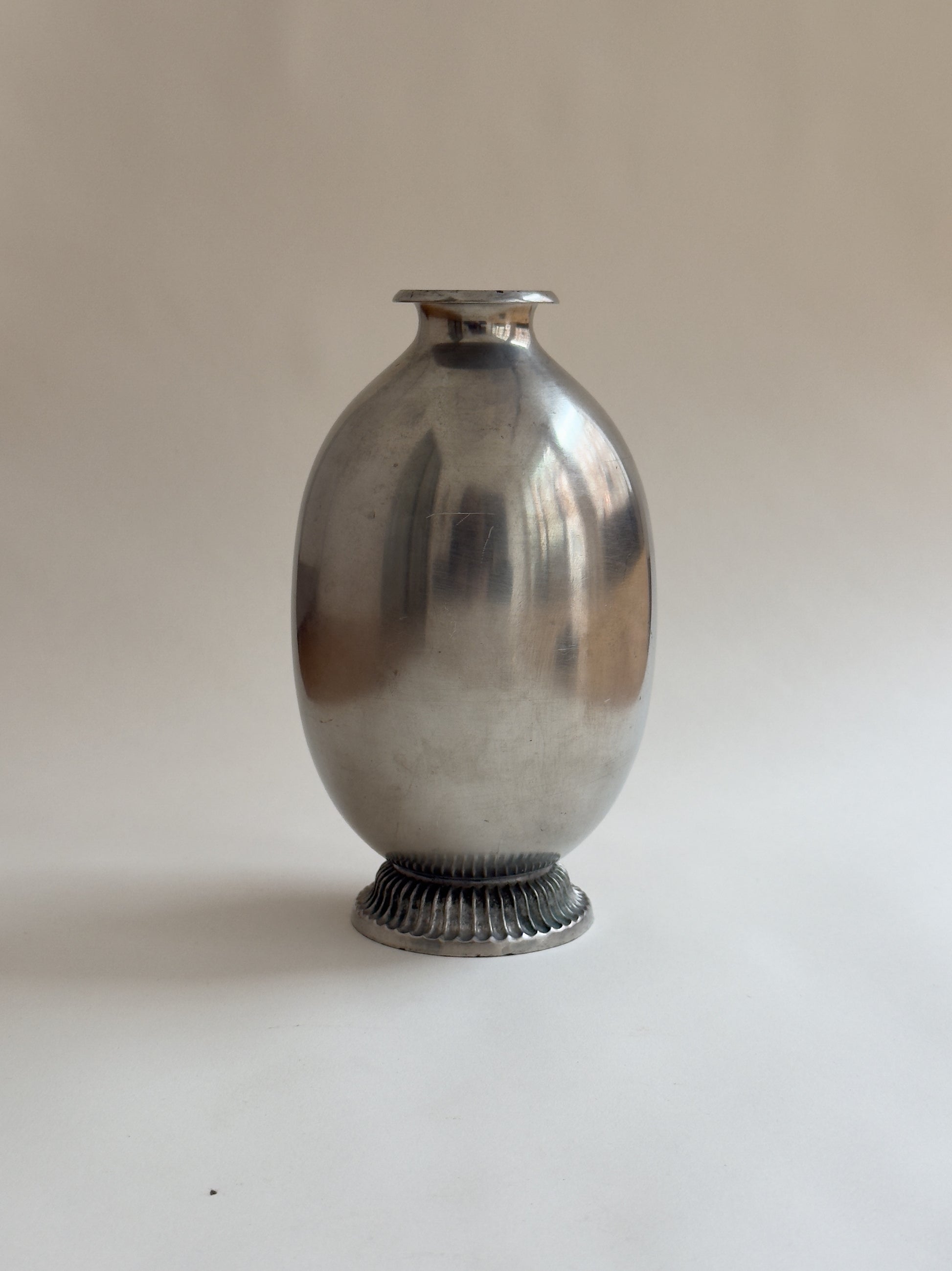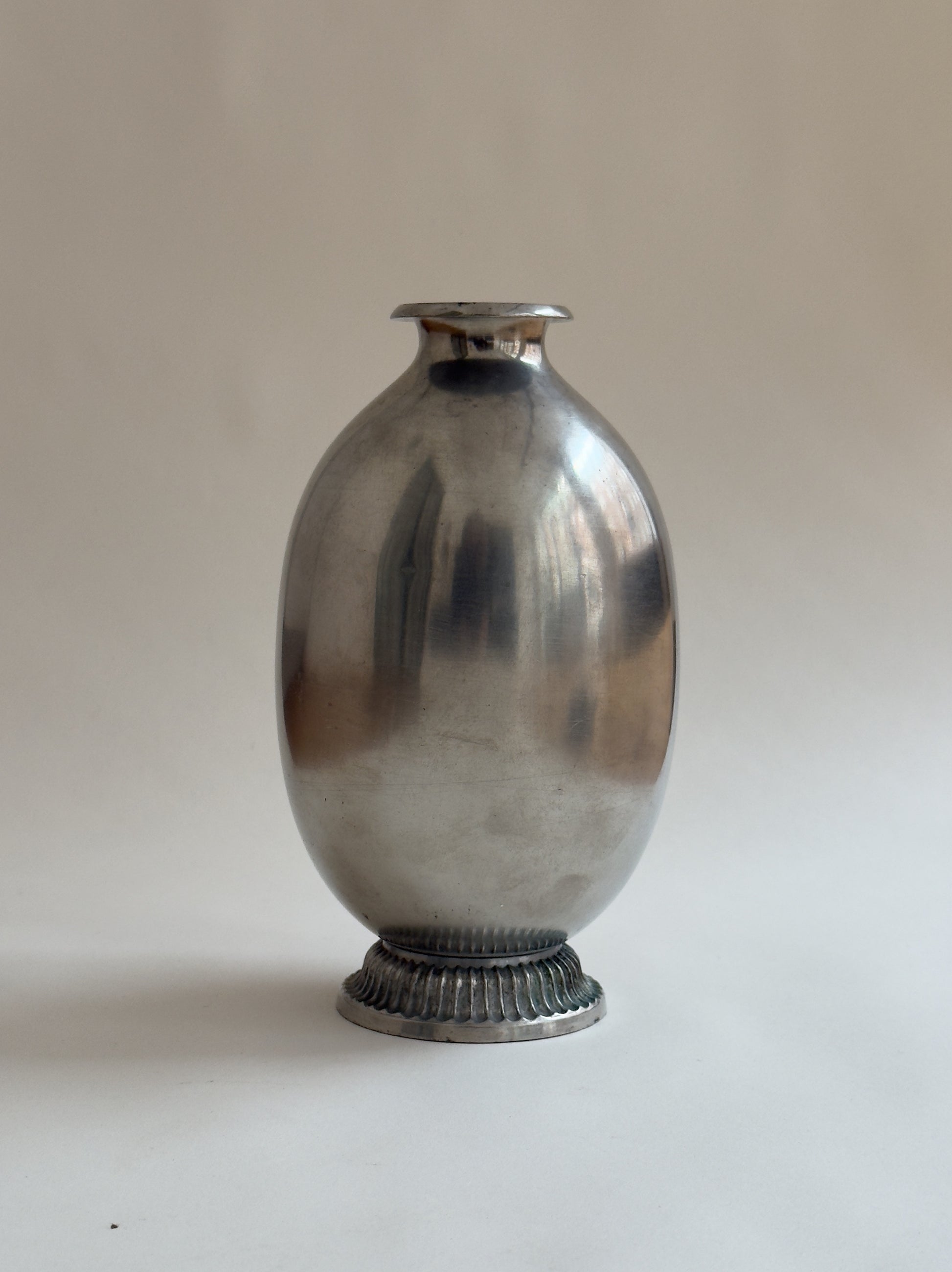 An elegant pewter vase from GAB (Guldsmedsaktiebolaget), distinguished by its classic silhouette and refined proportions. Standing at approximately 20 cm, it carries a pleasing sense of weight and balance, while the soft patina enhances its timeless character. A versatile piece that resonates with both modernist interiors and more traditional settings, offering quiet sophistication and enduring beauty.
