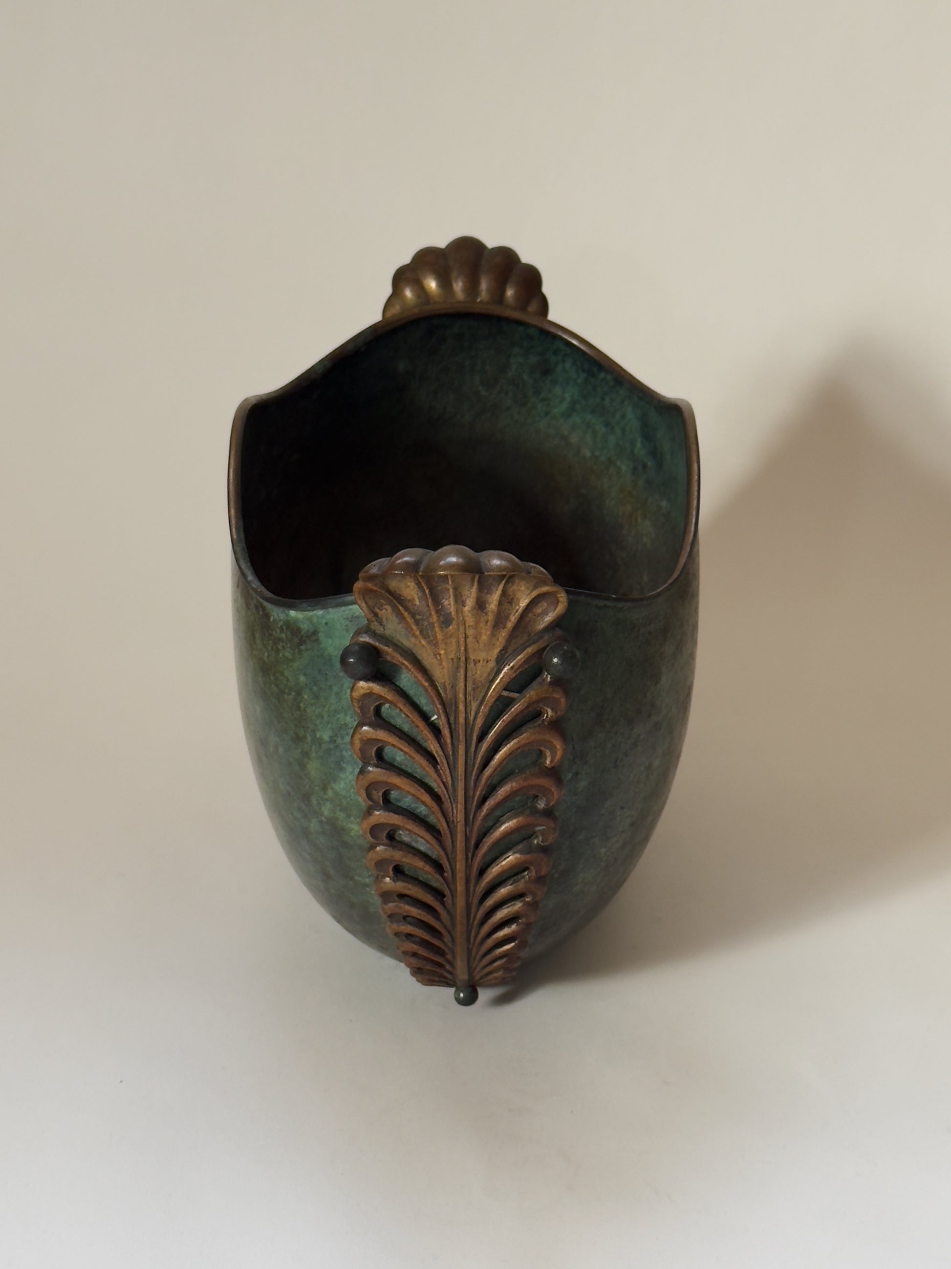 A striking bronze vase from Italy, early 20th century, with a sculptural presence that balances weight and elegance. The vessel’s rounded form rests on a sturdy base, while the warm patina enhances its surface with depth and character. Its proportions make it equally suited as a decorative statement or as a vessel for flowers.